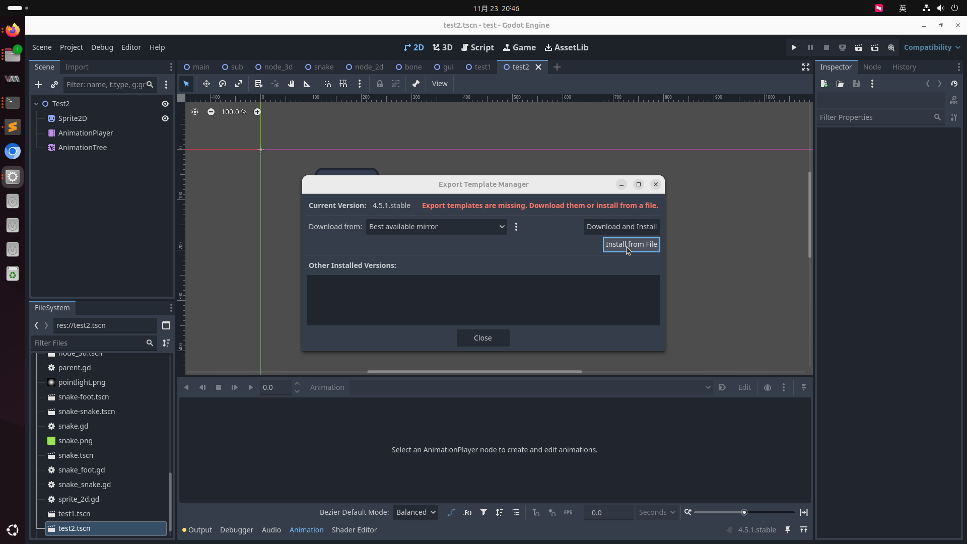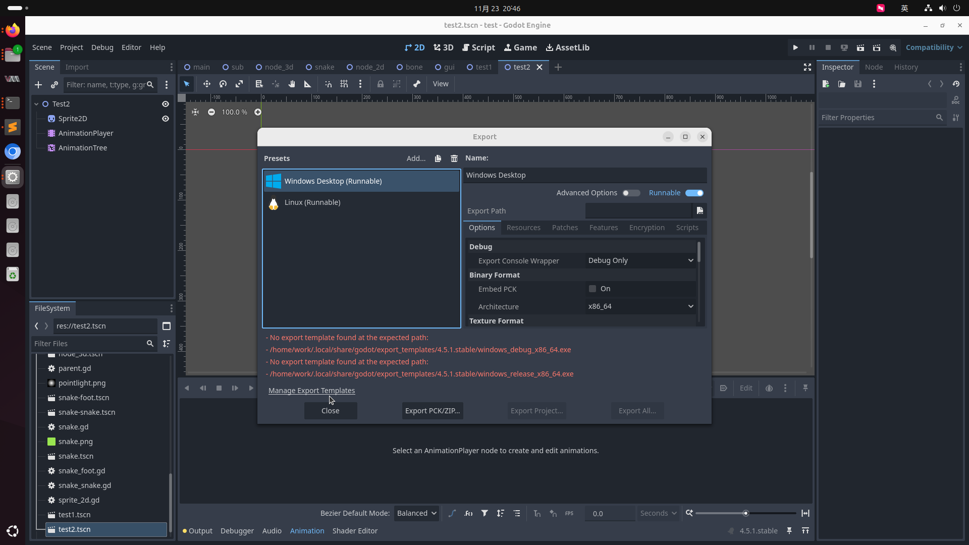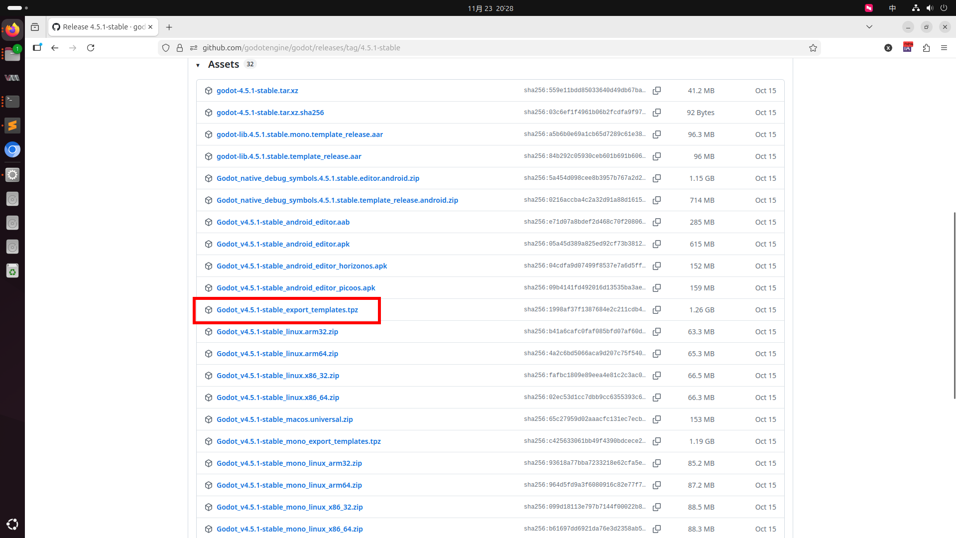 下载导出模板 4.5.1 https://github.com/godotengine/godot/releases/tag/4.5.1-stable 下载 Godot_v4.5.1-stable_export_templates.tpz 。