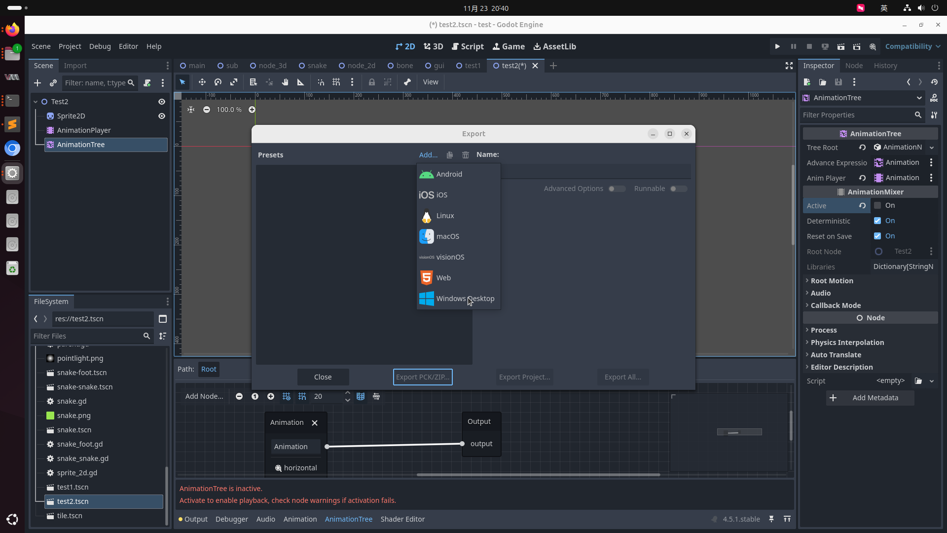Godot 是一款 C++ 编写的开源游戏引擎,支持 Windows, MacOS, Linux, Android, Web 平台。